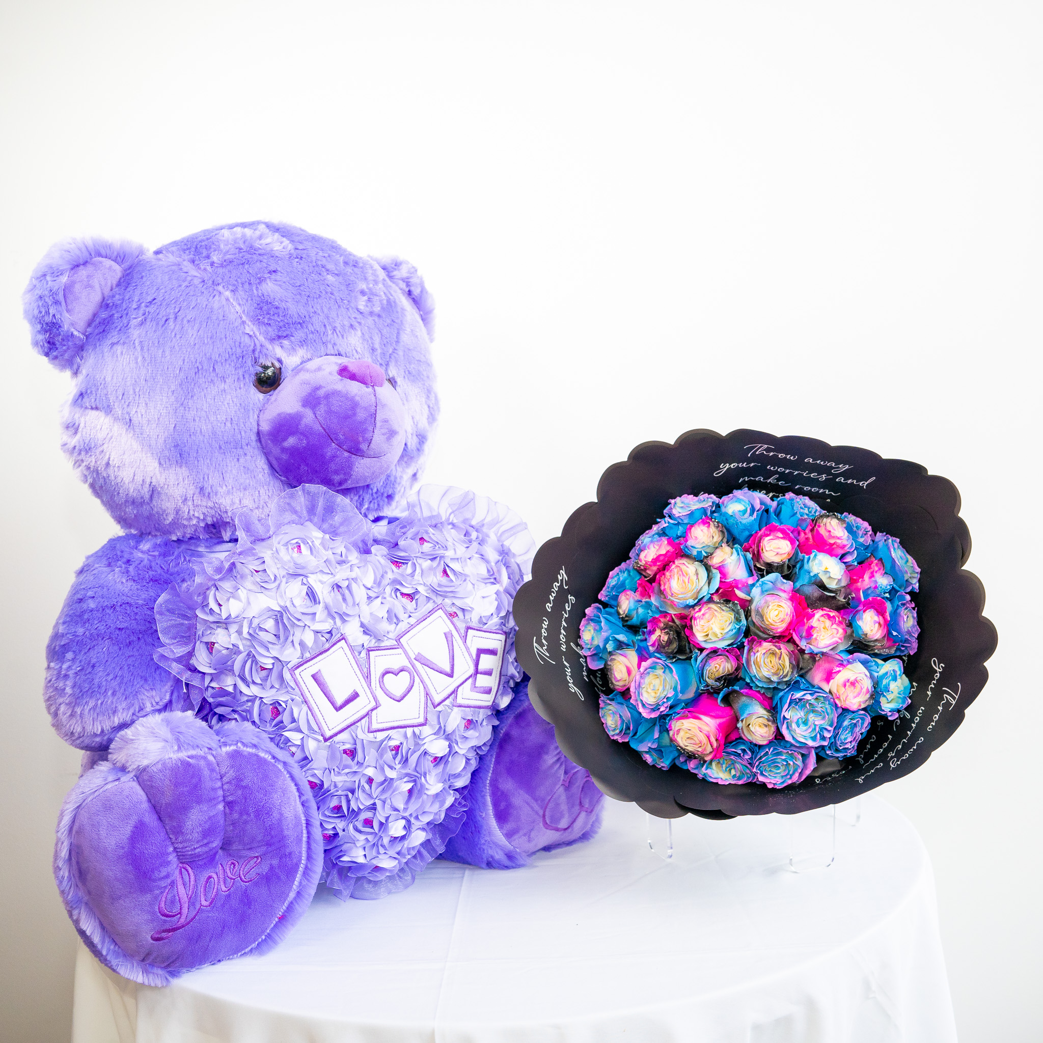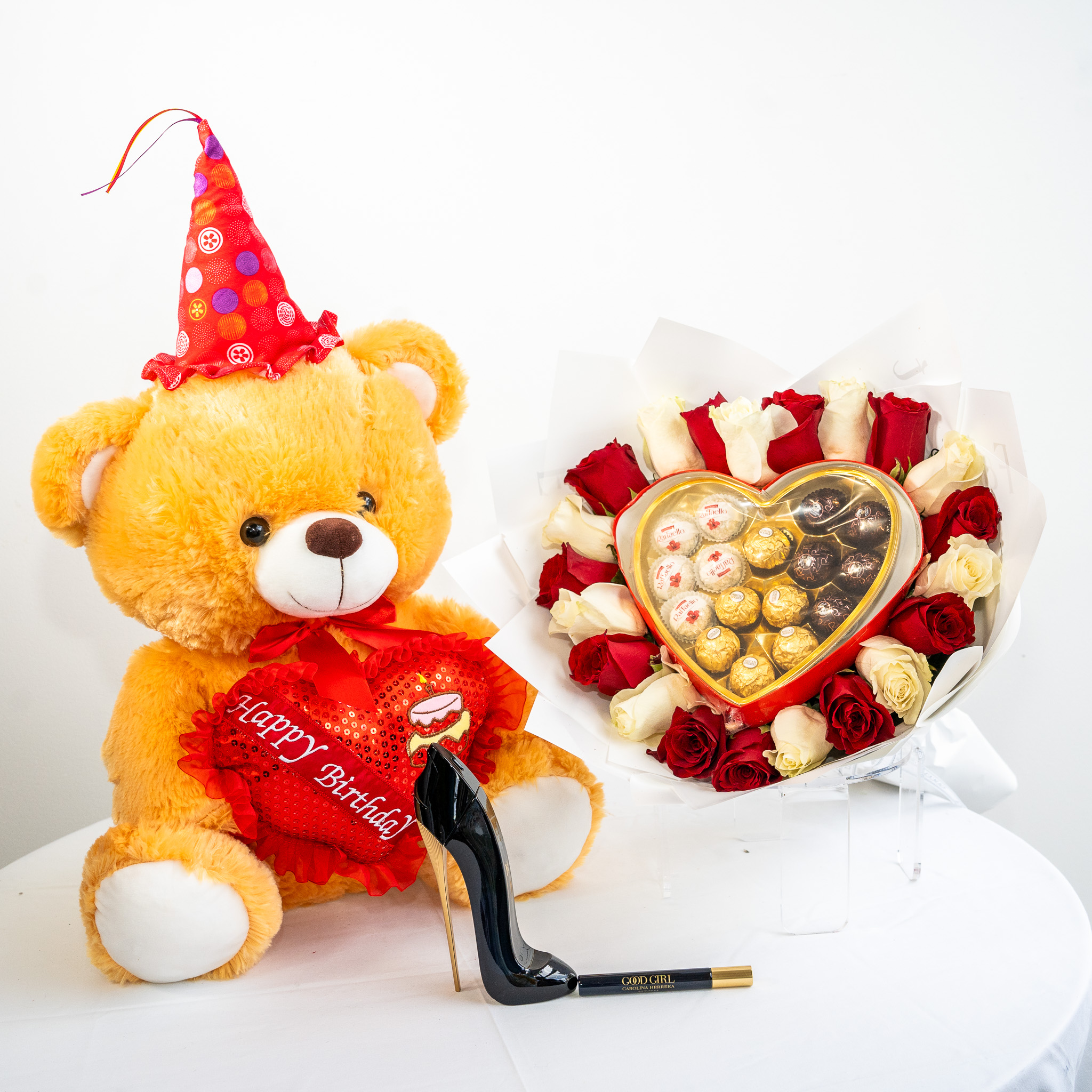 Bouquets 50 Red Roses $175Code:1050 12 Roses and Chocolate $65Code:1051 Big Teddy beard, chocolates, and roses $145Code:1052 Big Teddy Brown with 50 red roses $245Cod:1053 Extra Big teddy beard with red roses $165Code:1054 Heart Teddy Beard and Roses $75Code:1055 Kitty with 12 roses $95Code:1056 Mickey Mouse and red roses $85Code:1057 Mini Mouse and roses $65 Code:1058 Pink Teddy Beard with 50 red roses $265Code:1059 Purpple Teddy Beard with 36 tinted roses $195Code:1060 Rainbow roses and chocolates $85Code:1061 Stitch and blue roses $165Code:1062 Teddy beard and blue roses $145Code:1063 Tinted roses and chocolates $75Code:1064 Tinted roses with Pepa Ping $85Code:1065 Big Panda with blue roses $195Code:1066